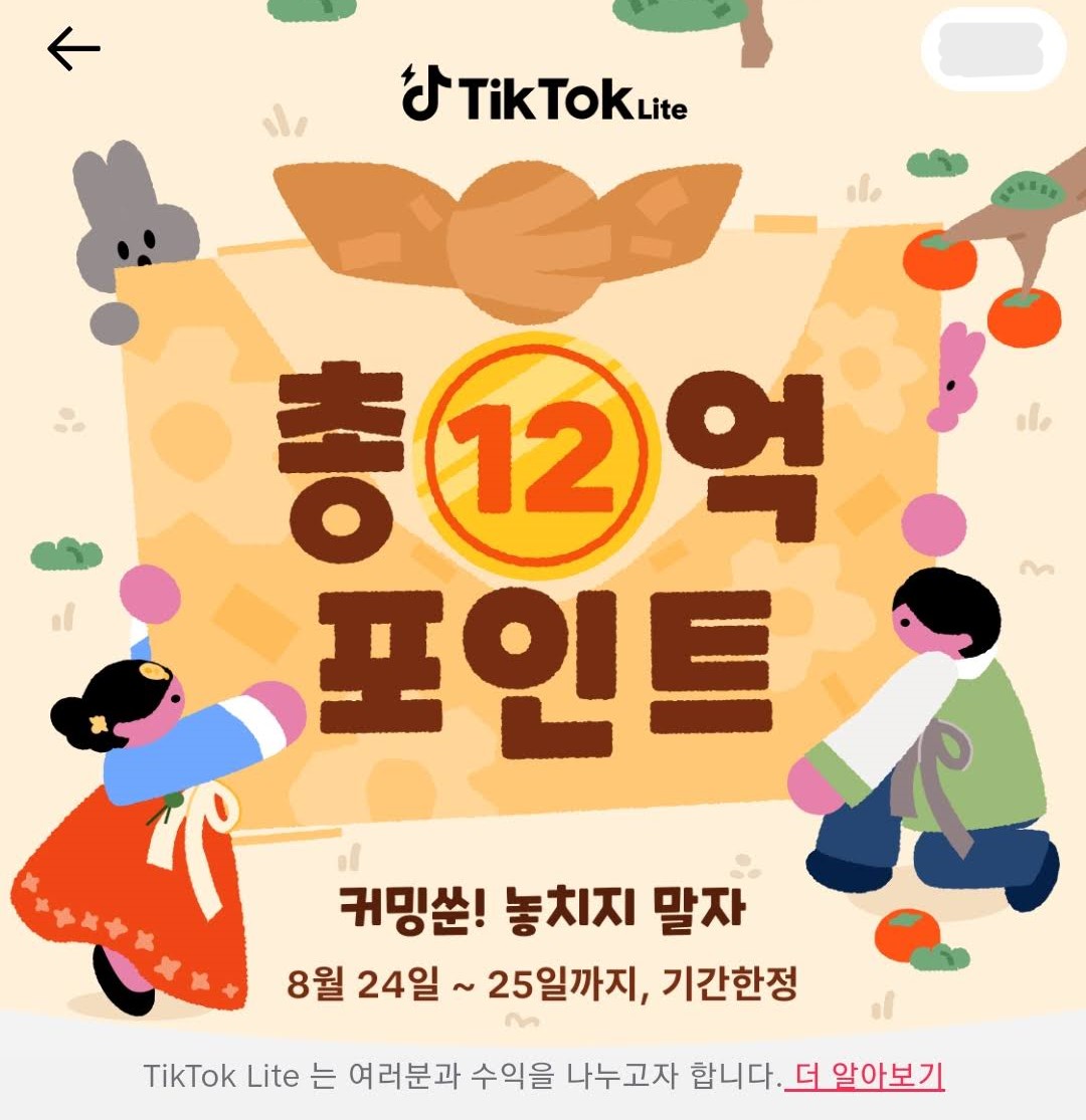 요즘 앱테크로 떠로으고 있는 틱톡 라이트에서 또 포인트를 쏜다고 합니다. 무려 12억 포인트! 이벤트 날짜와 포인트 얻는 방법에 대해 자세히 알려드리니 이번기회 놓치지 마시고 포인트 받아 가세요.